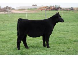 This solid black MAB daughter is a long sided attractive female that is out of a three year old. I know we got behind and she is still horned in the picture and videos, but she was surgically done twenty minutes after her picture was taken. As I write this footnote I love her feminine head shape and long sleek neck. Take this one home and feed her and she will only get better with time.