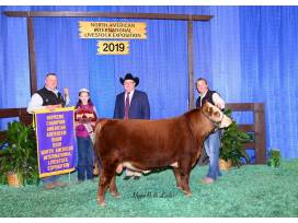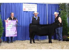 FCC MIC Miss Flo 007H is a moderate, deep ribbed, big hipped, easy fleshing purebred heifer out of SFR/CSF SIGNAL the Supreme Aberdeen at the 2019 NAILE in Louisville, Ky. and Reserve National Champion Percentage bull at the National Western Stock Show in 2020. She will be exposed to CSF TAMBORA a red fullblood bull after October 23,2021. This mating could throw some color as her sire is a red baldie. She was Reserve Champion Percentage female at the Big E Livestock Exposition in West Springfield, Mass.