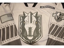 Player signed Military Appreciation jersey worn during the 11/6/21 game vs the Tucson Roadrunners.
