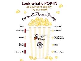 Just pop the cork with Courtyard Winery and The Original Popcorn House! Enjoy wine and popcorn pairings with four handcrafted wine tastings paired with unique, gourmet, locally crafted Original Popcorn House popcorn.