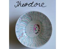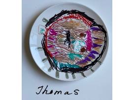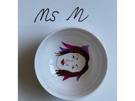 16K-102 students made self-portraits and other creative drawings on ceramic plates and bowls with oil-based Sharpie paint pens. These have been baked to set the designs so should be food-safe, but you are encouraged to hand wash to best preserve the art.