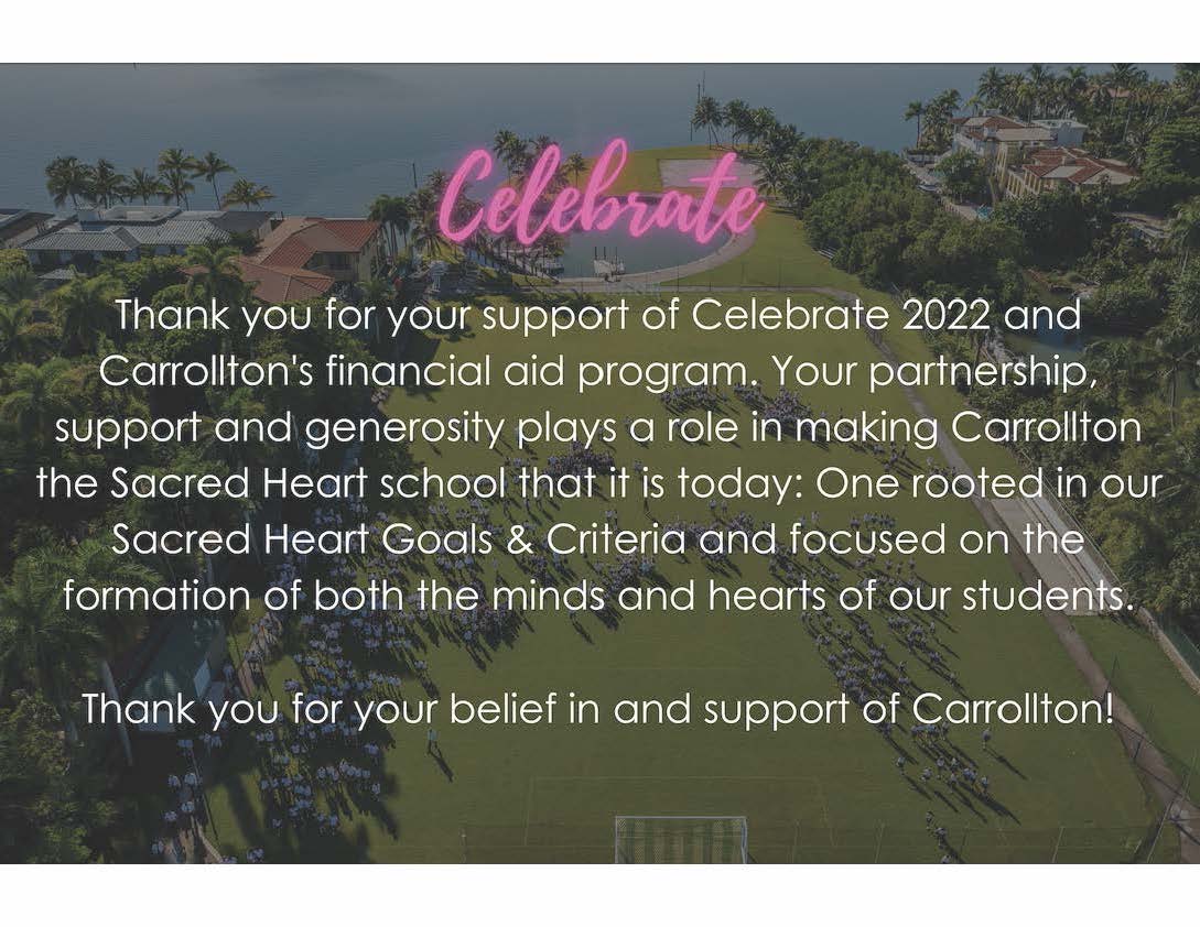 Funds raised benefit our financial aid program for girls from Montessori through the Upper School. Currently Carrollton provides $3.5 million in financial aid to deserving students across all grades. Your generosity directly supports our mission to education girls into confident young women of faith, intellect, compassion and courage.