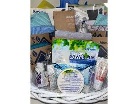 Blue EnvirocCloth, Purple Window Cloth, Cleaning Paste, 1.1lb Laundry Detergent, Sea Mist Kitchen Towel, Sea Mist Kitchen Cloth, Oven & Grill Cleaner, SpiriSponge (2 pack), Forever Bottle w/ Sprayer, Odour Eliminator (2oz), Descaler (2oz), Body/Face Cloths (3 pack), Exfoliating Facial Mitt, Lysere Hand Lotion, Timeless Lip Balm, 2022 Catalog & Booklet with Product Instructions.