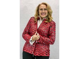Red Lamb Leather on Mesh-Leaf Design Zip "25 Jacket. (Can be exchanged for size S-XL) Kushi Vericci Leather.