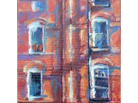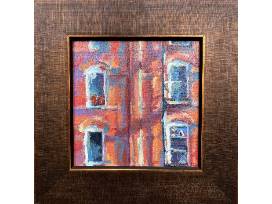 An abstract composition depicting reflections of iconic Union Station signage on a neighboring building, by Denver painter Kelly Berger