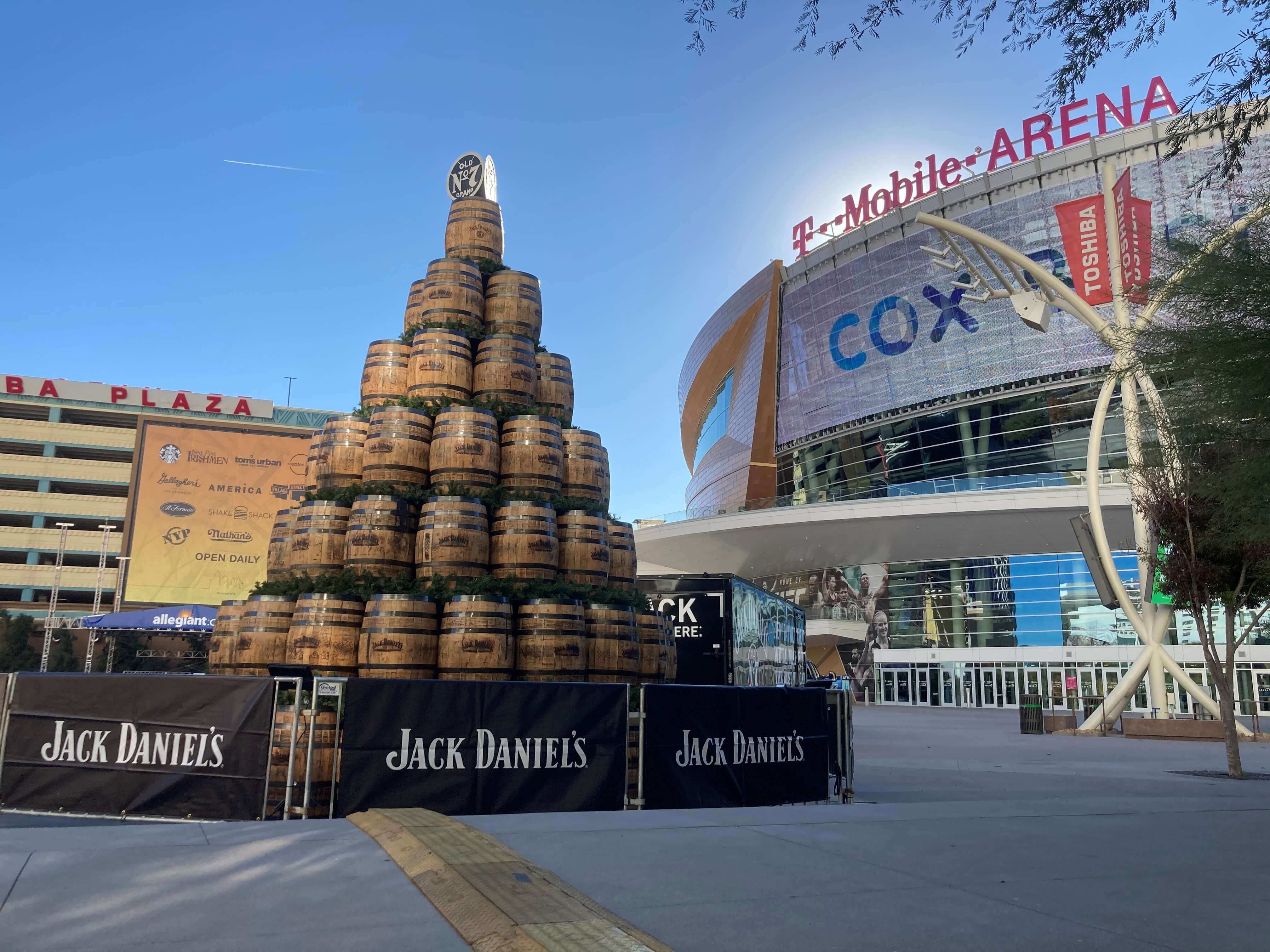 This holiday season, Jack Daniel's is displaying over 100 of their whiskey barrels on a unique tree in Toshiba Plaza at T-Mobile Arena. All the barrels used to make this famed Jack Daniel's Barrel Tree were once entrusted to mature the famed Tennessee Whiskey.