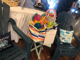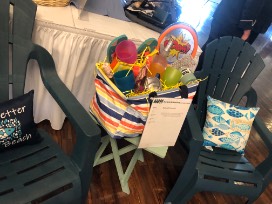 2 Adirondack chairs, Thirty-One cooler bag, insulated bag and cups, 12-pack White Claw Tropical Rum, Peach Margarita, flip flops
