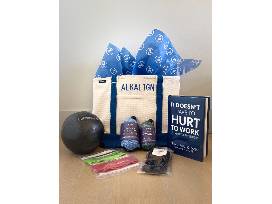 Turns out, it doesn't have to hurt to work. Alkalign is a fun fitness community created by and for those who want more than punishing caloric burn. Improve posture, increase strength, enhance performance and reduce aches and pains and actually FEEL AMAZING with this functional, balanced and efficient workout.The starter kit includes a 1-month membership to Alkalign (livestream and/or in-person) and an Alkalign tote bag stuffed with some fun things to get you started! Think massage therapy balls, loop bands, grippy socks, and a copy of Alkalign Founder Erin Paruszewski's book, It Doesn't Have to Hurt to Work, which she will sign for the highest bidder!
