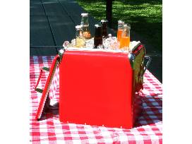 - Cooler - holds up to 18 cans or 12 bottles. Built-in bottle opener, locking handle with lid; Dimensions: 11.5" x 9" x 14.5", 3 gallons (12 qt.)