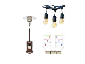 The Berkley Jensen Outdoor Propane Heater. Dependable solid state easy-light push button ignition system never requires batteries or outside power of any kind. A powerful heat element produces over 48,000 BTU's of radiant heat that reaches out up to a full 15' around the unit (175 sq./ft).
