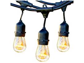 Brightech Ambience Pro Waterproof Outdoor String Lights. Hanging industrial 11W Edison bulbs on a 48 Ft wire, these vintage patio bistro lights are the perfect addition to any outdoor space.