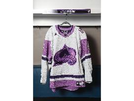 Signed Colorado Avalanche Hockey Fights Cancer Jersey. Size 56.
