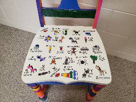 The 3K class has been working hard learning their ABC's, it was fitting to show that! Each student participated by adding 2 to 3 fingerprints to the ABC chair. We then came up with an object that used each letter of the alphabet, and created it out of those fingerprints.