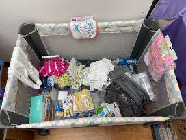 Includes Washcloths, Pacifiers, Bibs, Plates and Utensils, Baby Food, Burping Cloths, Diaper Bag, Onesies, Shampoo/Body Wash Sets, Lotion, Grooming Kit, Finger Toothbrush, and SO MUCH MORE