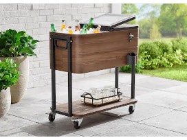 Enjoy a broad variety of wines, hard alcohol and accessories for your next party. The included 80-quart woodgrain cooler on wheels will be sure to make your next party hopping!