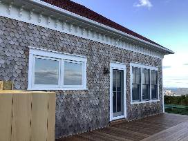 There is no better way to get out of the city than heading to this carriage house on Block Island with magnificent ocean views! This recently remodeled air conditioned home is located on the southeast side of the island and has a wonderful view of town and the Atlantic Ocean. The house sleeps 4, there is a bedroom with a queen on the first floor as well as a large loft area which accommodates 2. The kitchen is fully equipped with new appliances and kitchen necessities. There is a generous deck with a gas grill which takes advantage of the fabulous view. A wonderful outdoor shower completes the picture. This house is thoughtfully and tastefully appointed, carefully maintained and will provide the perfect home base for your Block Island vacation.