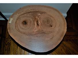 Hand-made with love by BHMS Trustee and Alum Parent Nick Pelliccione! Sourced from an elm tree cut down in a friend's yard in New Jersey, the top is roughly circular (21" x 18" x 3" thick) and is approximately 22" tall. The table is finished with a shellac sealer, multiple coats of Sutherland Welles Wiping Varnish (Low VOC), with a final coat of paste wax. The legs are from DIY Hairpin Legs, steel, powder coated matte black finish.