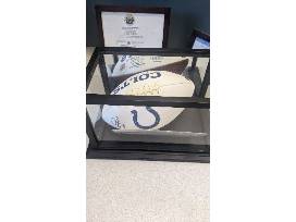 Framed football signed by Colts legend Peyton Manning. Peyton Williams Manning is an American former football quarterback who played in the National Football League for 18 seasons. Nicknamed "The Sheriff" due to his tendency to audible prior to the snap, Manning is considered to be one of the greatest quarterbacks of all time.