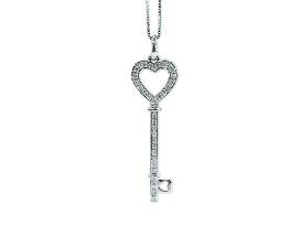 14 Karat gold "Key to your Heart" pendant with 18-inch white gold box chain. Made with .40 carats of diamonds totaling 33 stones.