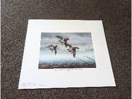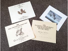 Calling all Nature Lovers! This package includes three small prints with collector stamp, limited edition signed and dated by artist featuring quails and geese. Also features one standalone print (without collector stamp, signature, or date) of waterfowl. A perfect addition to your art collection or cabin decor! Prints measure 12"x18"
