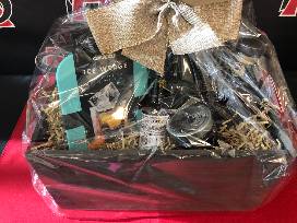 "Call Me Old Fashioned" Basket includes two bottles of bourbon, one bottle of whiskey, ice wedges, two rock glasses, cherries, bitters, & vermouth