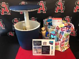 Pictures don't do this package justice as it includes Large Beach Tote Bag, two beach towels, sunscreen, two Hydro Flask water bottles, and a Keter Go Bar Cooler filled with adult beverages!
