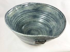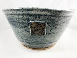Blue Stoneware Serving Bowl w/Leaf Medallion