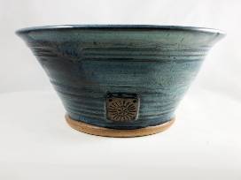 Blue Stoneware Serving Bowl w//Flower Medallion
