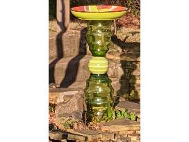 With an Italian pottery bowl on top and vintage, green glass base, this will be a stunning addition to any garden! Designed and created by local glass artist, Diane Markle you are guaranteed to have a one of a kind bird bath that will be a conversation piece for years to come!
