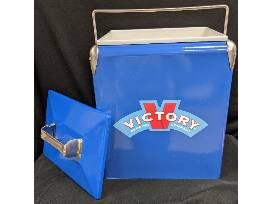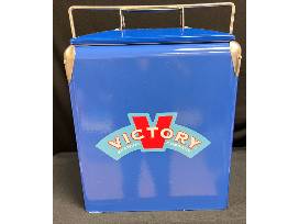 This Victory Brewing branded metal cooler with locking lid will age beautifully, thanks to it's timeless design. (15"H x 12.5"W x 9.5"D)