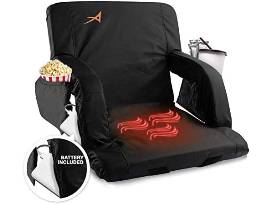 Want to stay warm up in the bleachers! Then this basket is for you. Stay warm in style with a heated backpack stadium seat for bleachers with back support. USB battery included, 3 levels of heat, 4 pockets for snacks, and a cup holder. Also includes a red fleece blanket and a 17oz white stainless steel water bottle with Penn Fusion logo.
