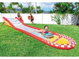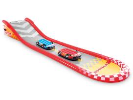 Enjoy some competitive fun in the sun with the intex Racing Fun water slide. The racing set includes 2 surf riders so your kiddos can go head to heard with one another down the slide. The slide is