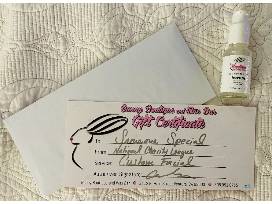 Dull skin, acne prone, dry skin, tired skin? You will want this gift certificate for a custom facial with Carlie Nething at Bunny Boutique and Wax Bar. Plus a bonus bottle of Eye Serum.