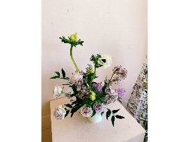 Win a one of a kind arrangement that is built into a curated ceramic vase with premium blooms (think garden roses or peonies when in season) with smaller seasonal premium blooms, textural flowers and greenery.