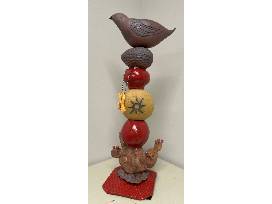 This handmade totem was crafted by the artists at Clay Totem Whisperers.