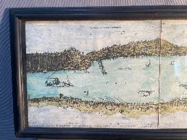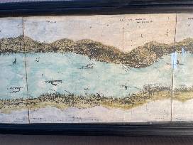 The work being offered is a three-foot section of the original twelve-foot panorama. The original work was offered as a folded hand pointed map enclosed in a book. In the 1847 edition the panorama and text were extended north to Lansingburgh on the east shore and Waterford on the west with an engraving of Cohoes Falls.