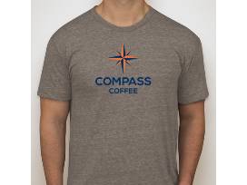 2) Incredibly soft, high-quality American Apparel t-shirt emblazoned with Compass Coffee and Made in DC logos.