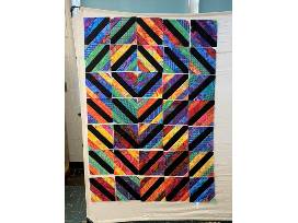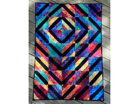 The quilt measures 40" x 58" and can be used as a lap quilt or a large wall hanging.