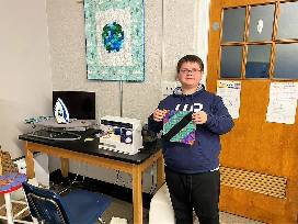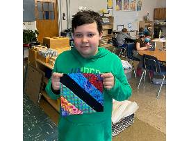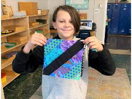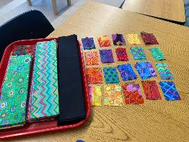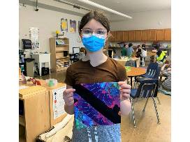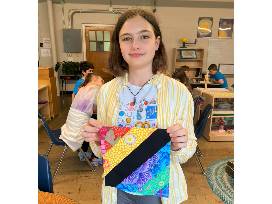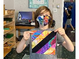 "I always jump at the chance to help," Charly once said about working with MMS students. "Kids enter every activity with an anything-is-possible attitude. They always pick the biggest brush and the brightest paint. Their attitudes inspire and feed into my own work." In our quilt design students, chose their colors from the bright and bold fabrics, honoring this memory of Charly.