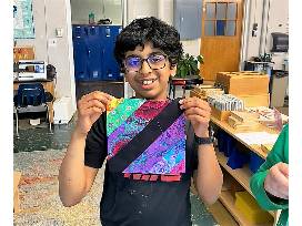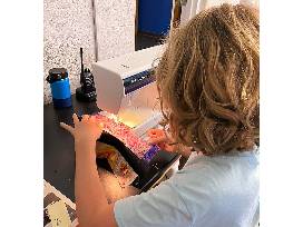 Upper Elementary students create a colorful tribute to Charly Hamilton with a vibrant quilt.