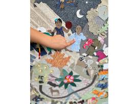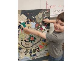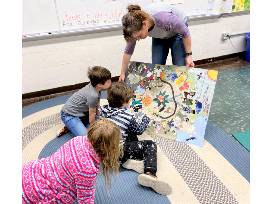 The figures, fauna and events depicted were chosen by the children.... many represent their parents and/or their favorite things about West Virginia. Take a close look and see how many you recognize!