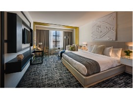 Each Superior King room is stylishly decorated in minimalist design with artful touches. Sophisticated in-room entertainment is available on our high-definition 40" flat-screen, smart TVs, and many furnishings are designed to suit your personal living and working needs. The work area is free of clutter and well lit with task lighting for maximum productivity. An in-room safe is provided for your peace of mind. And our spacious bathrooms feature luxurious toiletries, ample vanity space, and an oversized shower.