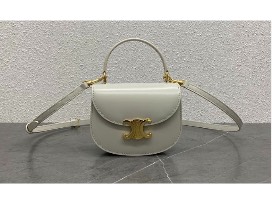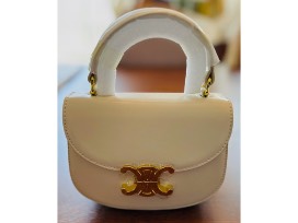 - (1) Petite Leather Cream Triomphe Hand Bag with Gold Snap Button Closure.