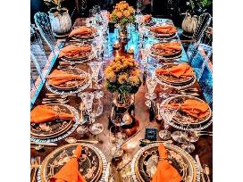 Enjoy a curated in-home four-course dinner for eight (8) from local caterers, FLOYD and FRANK! Includes menu and table setting consult and creation, night-of service and clean-up, and a custom dining experience for your group of eight (8) diners. Menu includes aperitif, three small-bite selections, intermezzo, four-course dinner service, dessert, and digestif.