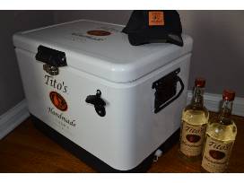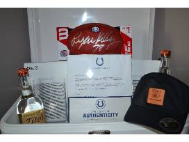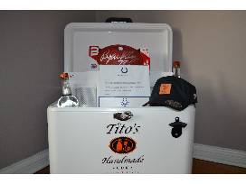The perfect pack to tailgate right before your favorite sports game! One Tito's Handmade Vodka 54 QT custom cooler with a latch, handles, and a bottle cap opener ($200). 2 1L bottles of Tito's Handmade Vodka ($25 each). A black Tito's baseball cap ($15). 2 White Claw Sonos speakers in white ($200 each). And a Ryan Kelly signed Colt's football (starting value at $75).