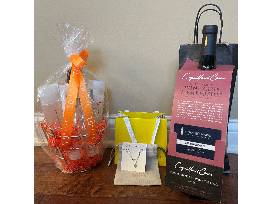 Pamper yourself or a loved one with this fun package of jewelry, hair care products, and wine!