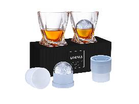 Drink some Bourbon in style with a set of Lorsia Whiskey rocks glasses with big ice ball molds included. Included is a bottle of Bulleit Single Barrel Bourbon!