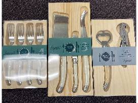 Create the perfect Charcuterie display with a Crate and Barrel Mateo serving paddle board and a French Home Laguiole nine piece charcuterie and barware set.