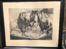Beautiful painting by Leslie Cope in 1946 titled, The Drinking Trough.