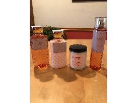 Gift basket includes Champagne Toast scented candle, shower gel, body lotion and fine fragrance mist.
